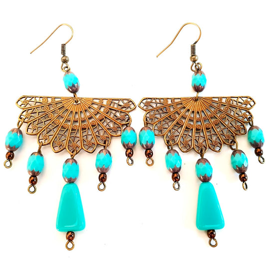Filigree Pointed Fan Antique Brass With Hole 45mm