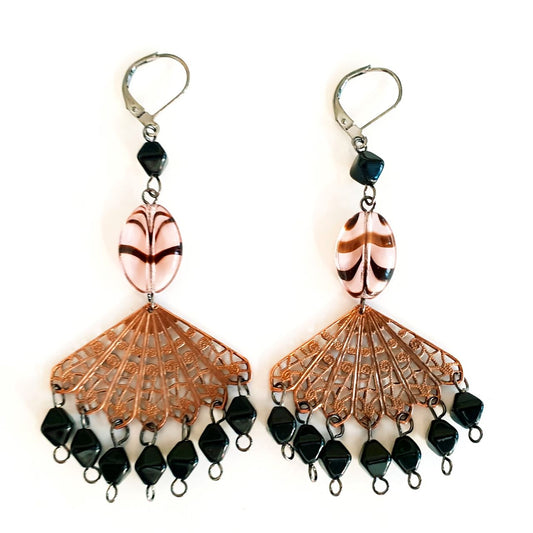 Filigree Brass Stamping Pointed Fan Antique Copper 35mm