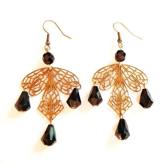 Glam Beaded Pendant Crystal Drop Bronze Diamante Rondell Black