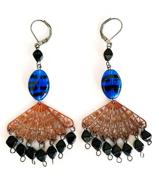Blue Opalino Petal Pointed Oval Spindle 6x16mm Czech Glass Bead