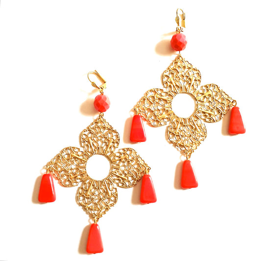 Triangle Deco Coral 6x16mm Czech Glass Bead