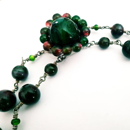 Chunky 2 Row Handmade Glass Bead Multi 2 Row Choker Jackie O Style