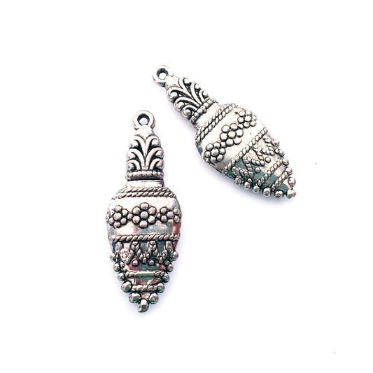 Bead Filigree Diamond 12x28mm Sterling Silver