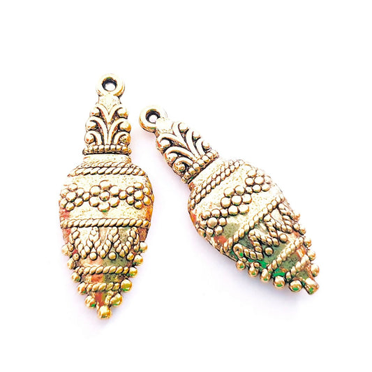 Metalised Plastic Pendant Spear Antique Gold 45x16mm