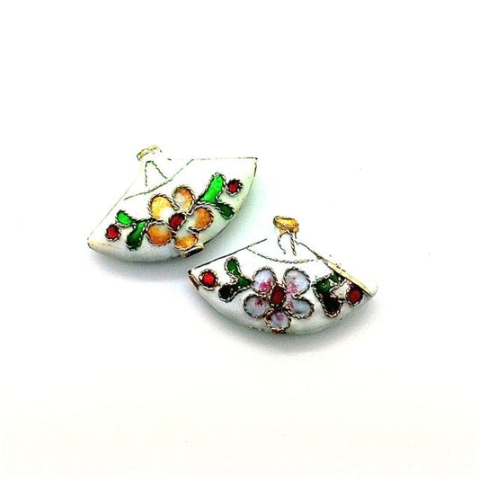 Cloisonne Metal Bead 14x24mm Fan White Gold