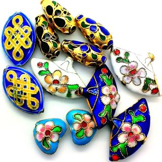Cloisonne Metal Bead 16x7mm Floral Drop Cobalt Jade Gold
