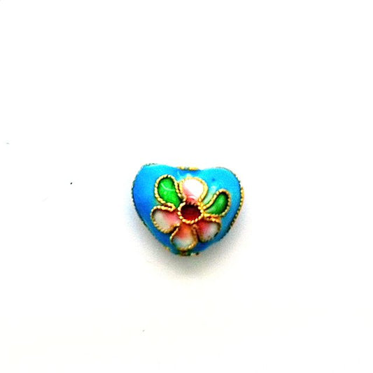 Cloisonne Metal Bead 10x14mm Heart Turquoise Gold