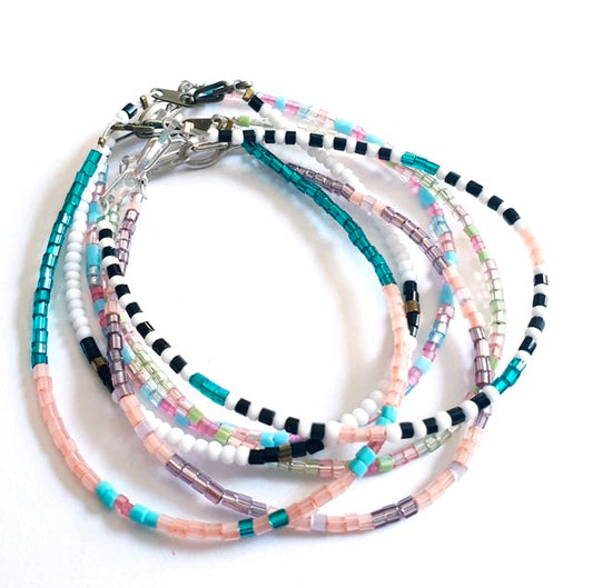 Seed beads are affordable, durable to work with and having a multitude of colours and finishes and sizes available, (15/0, 11/0, 8/0 and 5/0). The smaller the number, the larger the bead. Shapes include round seed bead or rocaille,  facetted (two cuts), tubes (bugles) and oblongs (slabs) all perfect for beaded jewellery, weaving, loom work and surface embellishment.