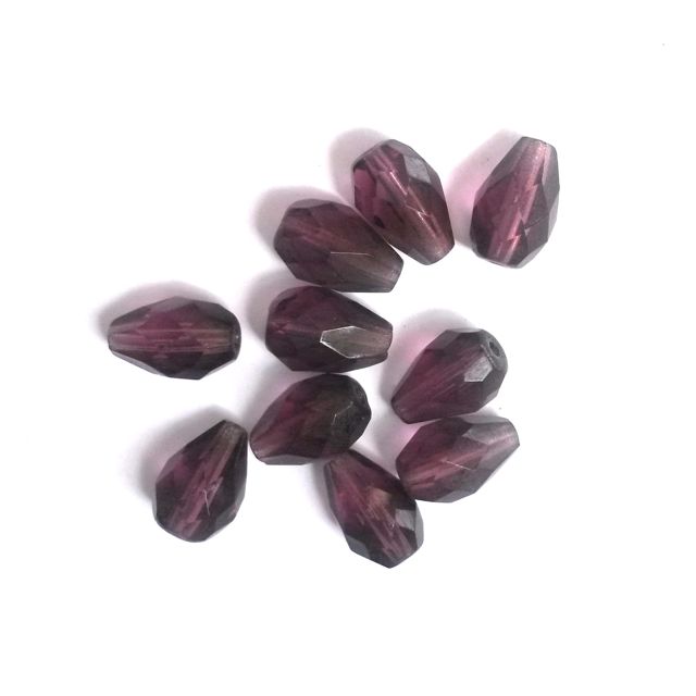 These 10x7mm amethyst Czech fire polished crystal drop beads are made using centuries-old glass-making traditions by machine bead cutting and polishing.