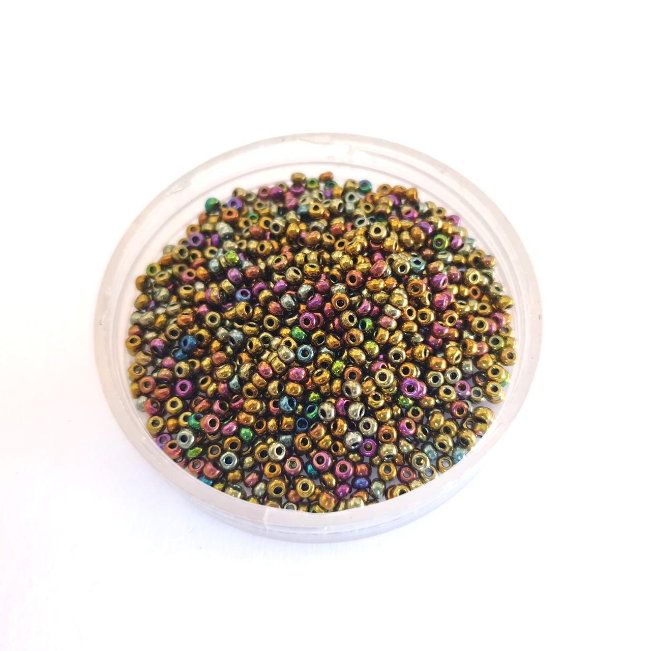 These size 11/0 Czech glass Metallic mix seed beads are a crafters small bead essential. They have a unique metallic mixed colouring lustre surface and will not chip, fade or peel.