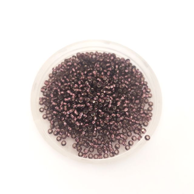 These size 11/0 (2.1mm) Czech glass Silverlined - amethyst seed beads are used predominately for bead weaving, surface embellishment, such as embroidery and hand bead weaving e.g peyote stitch. They are widely used in decorative surface treatments on clothing and textiles in addition to delicate fashion jewellery, such as friendship bracelets and intricate weaving and loom work because of their uniform shape. These glass beads are made by the established glass company Preciosa (prior to that Ornela a state run factory by Jablonex) in the mountains north of Prague. Seed beads are also known as rocailles (French “little stones”) and are made of the highest quality glass by the drawn glass method. Literally the glass is drawn out to become a long hollow tube and then cut into small pieces. Seed beads are affordable, durable to work with and having a multitude of colours and finishes and sizes available give the crafts person broad scope in creativity. Sizing is based on the size rod used for the manufacture of glass beads. The smaller the number, the larger the bead.