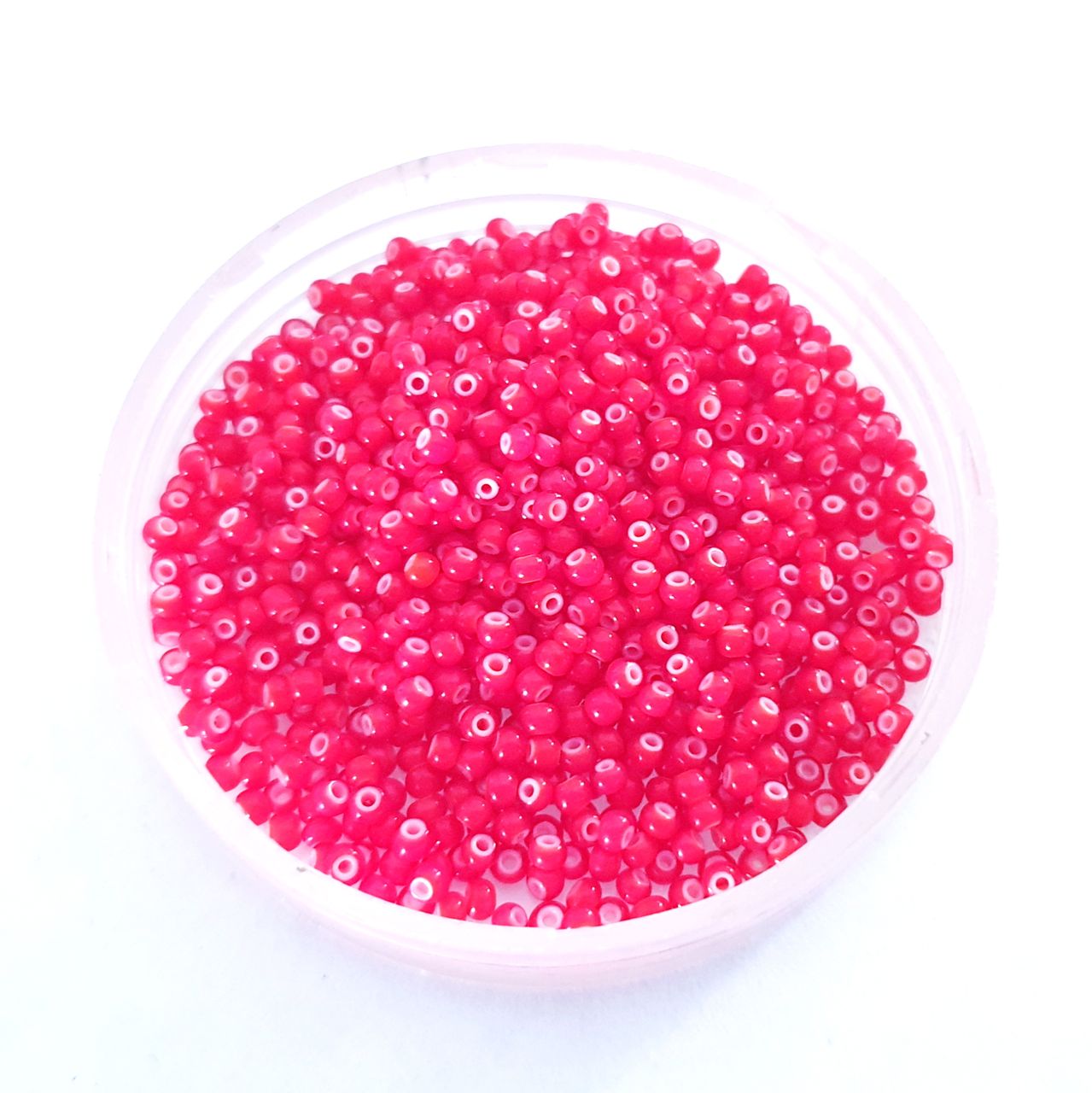 These tiny sized 2mm 11/0 Czech glass red, white heart seed beads have an incredible long history. The style of White Heart beads was invented around the year 1480, whereby red glass was coloured using actual gold. Naturally, because of its value, the gold had to be used sparingly by the bead makers. As such, they instead opted to use cheap colour filler for the core of the bead with the red only forming the outer layer. Today, an inner core of white glass. i.e., inside hole lined with white is used as the fill colour. Original trade beads are sought after beads today because of the intensity of their colour.
