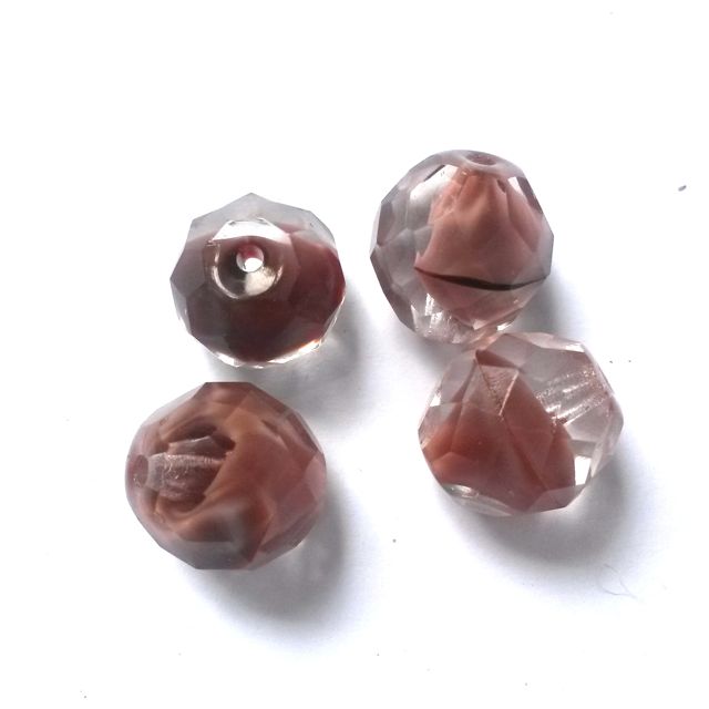 12mm Mix Brown Clear Czech Fire Polished Bead