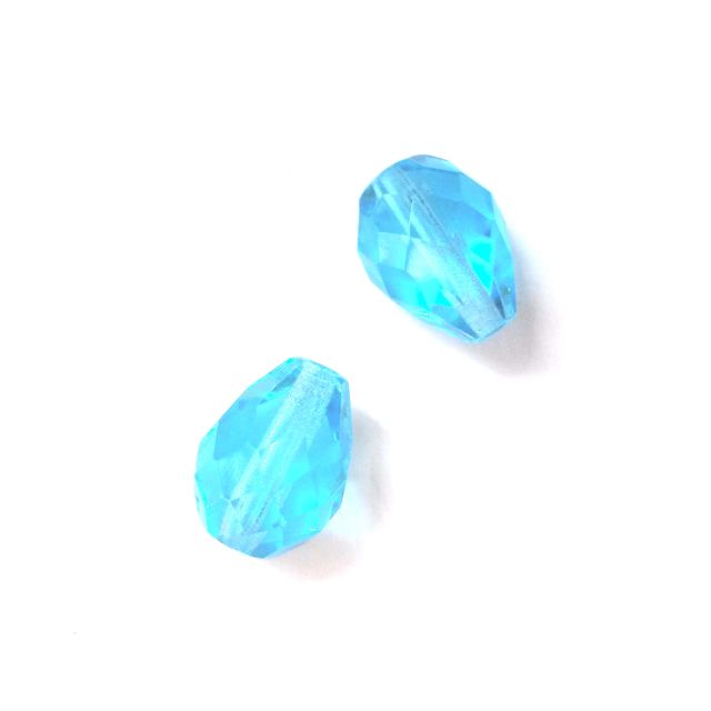 13x10mm Drop Aquamarine Czech Fire Polished Drop Bead