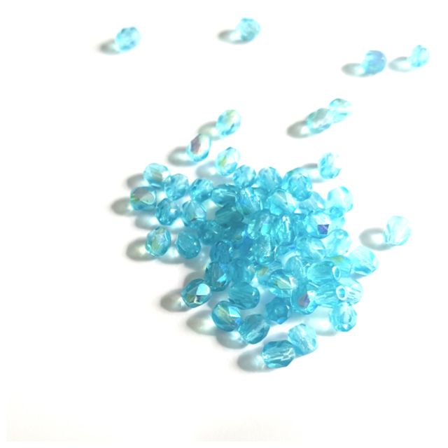3mm AB Aquamarine Czech Fire Polished Bead - Pack of 100
