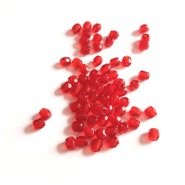 3mm Red Transparent Czech Fire Polished Bead - Pack of 100