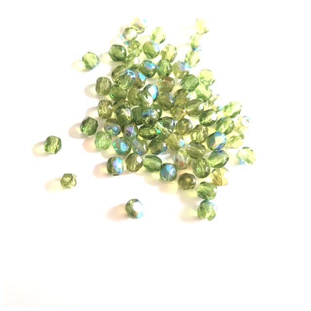 4mm Green Olive AB Czech Fire Polished Bead - Pack of 100