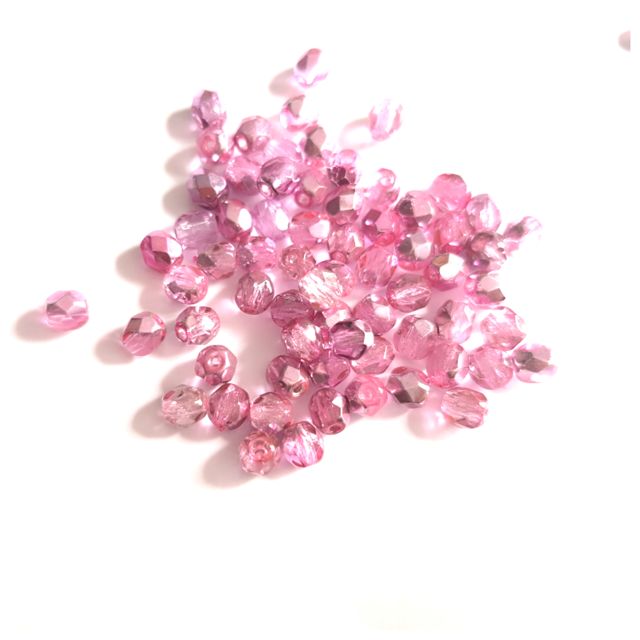 4mm Pink Hot Apollo Czech Fire Polished Bead - Pack of 100