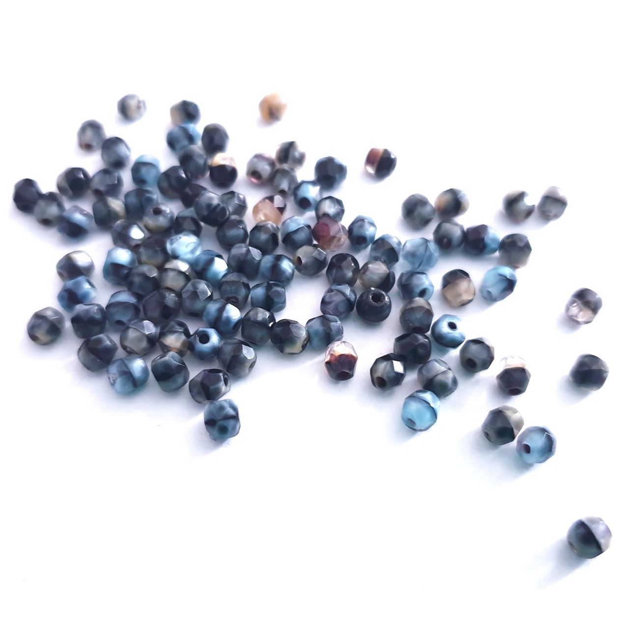 4mm Grey Black Camel Blue Mix Czech Fire Polished Bead