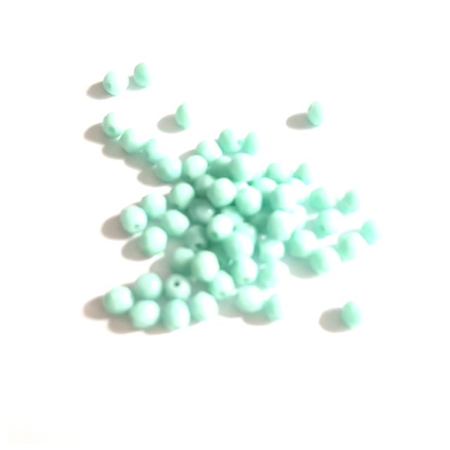 These small 4mm opaque aqua Czech fire polished crystal round beads are made by Preciosa in modern day Czech Republic. Use in delicate beaded jewellery, bead weaving, bead stitching such as Peyote, and decorative embellishment such as millinery, sewing and quilting. Over 60 colours and finishes to choose from.