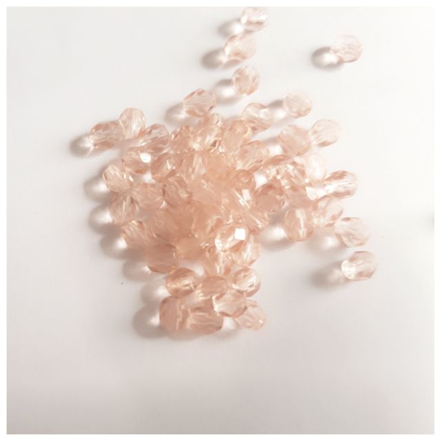 4mm Pink Transparent Czech Fire Polished Bead - Pack of 100