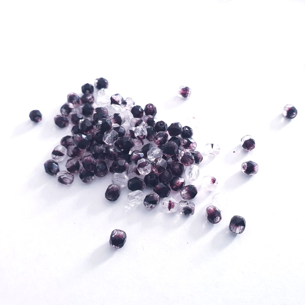 These small 4mm fire polished crystal dark amethyst transparent mix beads are made by Preciosa in the modern-day Czech Republic. They are ideal for delicate beaded jewellery, bead weaving, bead stitching techniques such as Peyote, and decorative embellishments including millinery, sewing, and quilting. We offer over 60 colours and finishes to choose from.