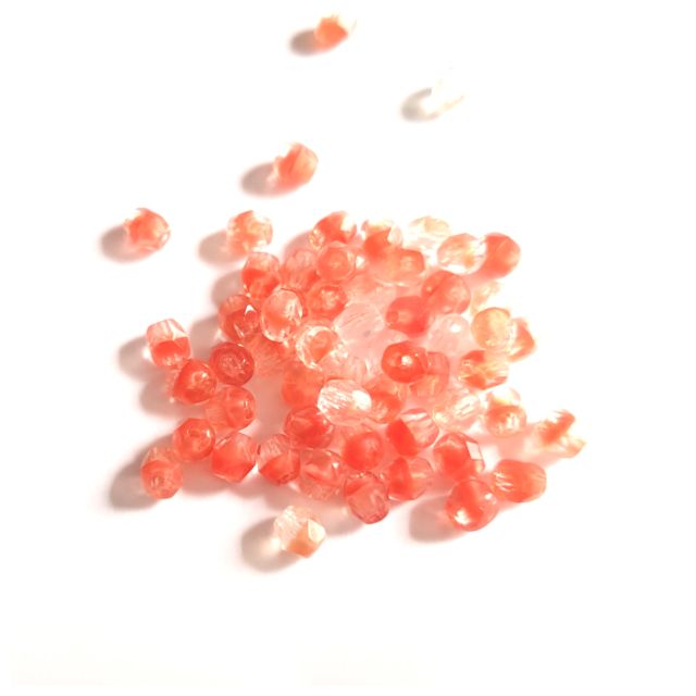 4mm Orange and Crystal Mix Czech Fire Polished Bead - Pack of 100