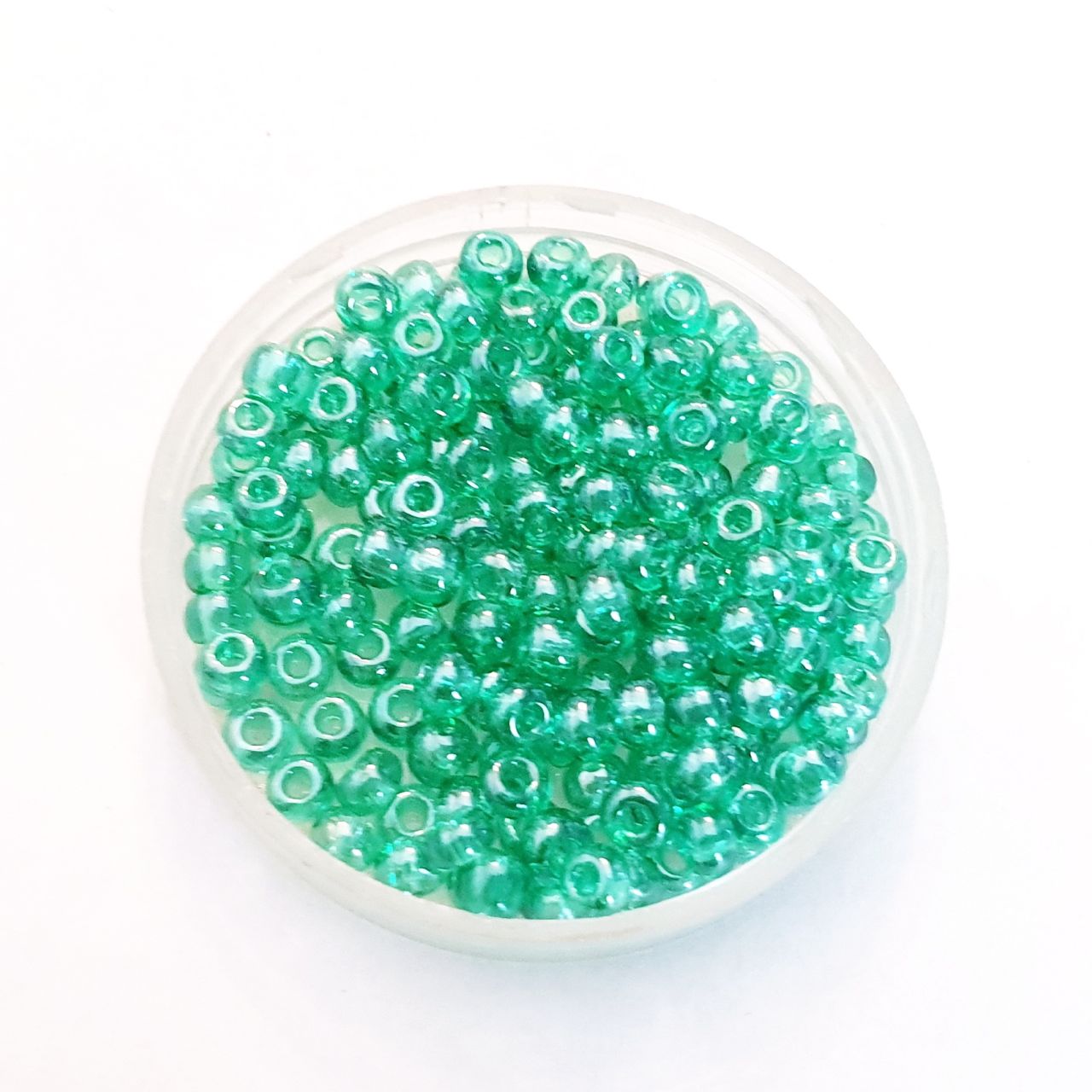 These size 5/0 Czech glass Transparent Lustred green seed beads are the largest size we stock. Used predominately for decorative surface treatments on clothing and textiles in addition to fashion jewellery, such as friendship bracelets. They are also a great size for kids jewellery making (over 5 years). Bead Vault offers the largest range of Czech glass seed beads online in Australasia, with over 80 colours available in our 5/0 seed bead range.