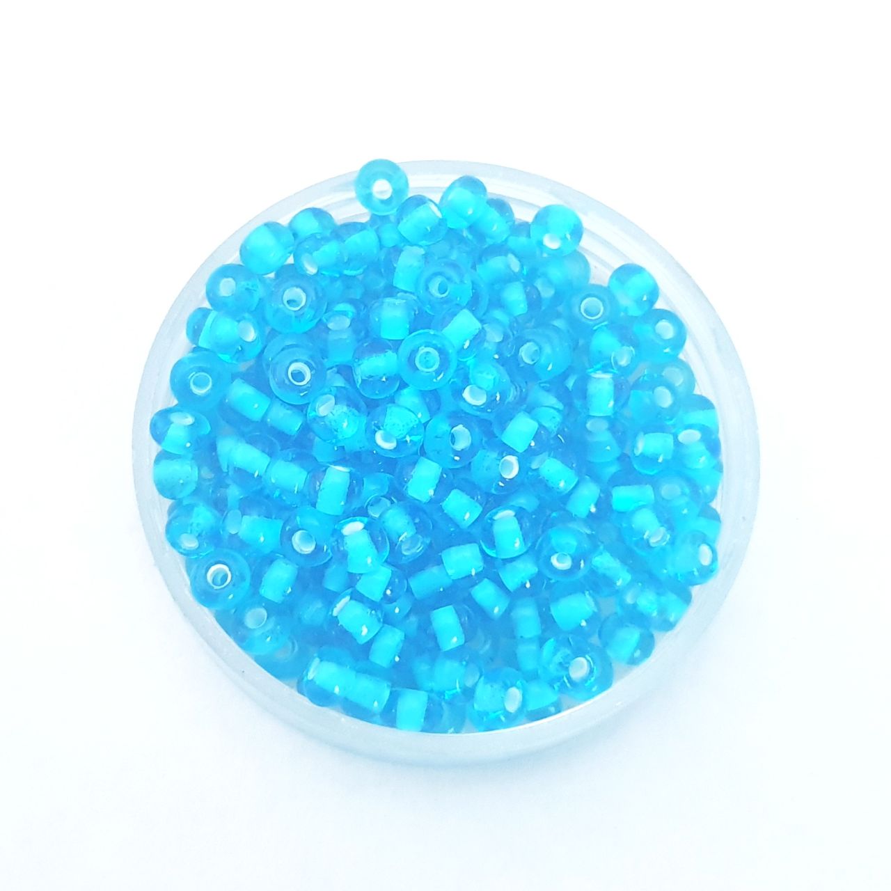 These size 5/0 Czech glass White Heart turquoise seed beads are the largest size we stock. Used predominately for decorative surface treatments on clothing and textiles in addition to fashion jewellery, such as friendship bracelets. They are also a great size for kids jewellery making (over 5 years). Bead Vault offers the largest range of Czech glass seed beads online in Australasia, with over 80 colours available in our 5/0 seed bead range.