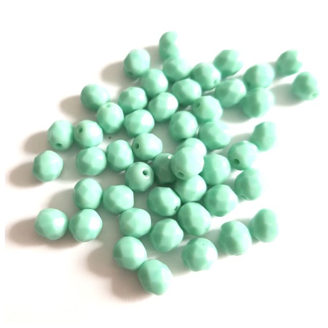 These 6mm opaque aqua round Czech Fire-Polished beads are a traditional style facetted bead used in beading, crafting and jewellery-making. An affordable and quality substitute to lead crystals they are a beader's staple.