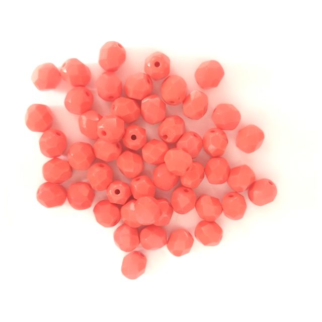 These 6mm coral opaque round Czech Fire-Polished beads are a traditional style facetted bead used in beading, crafting and jewellery-making. An affordable and quality substitute to lead crystals they are a beader's staple.