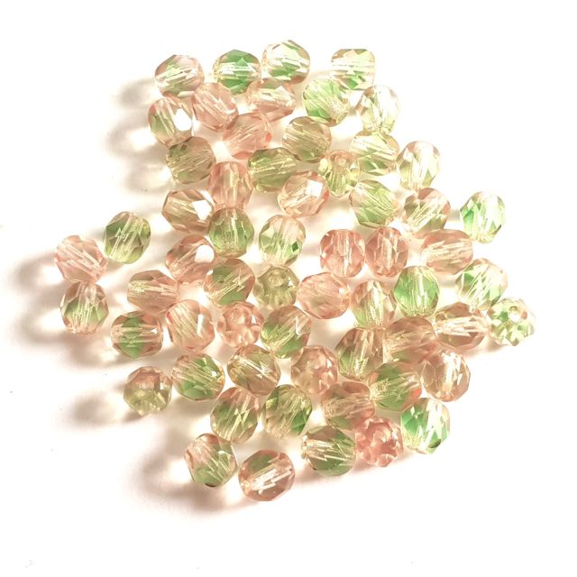 These pink green mix 6mm round Czech Fire-Polished beads are a traditional style faceted bead used in beading, crafting and jewellery-making. An affordable and quality substitute to lead crystals they are a beader's staple.