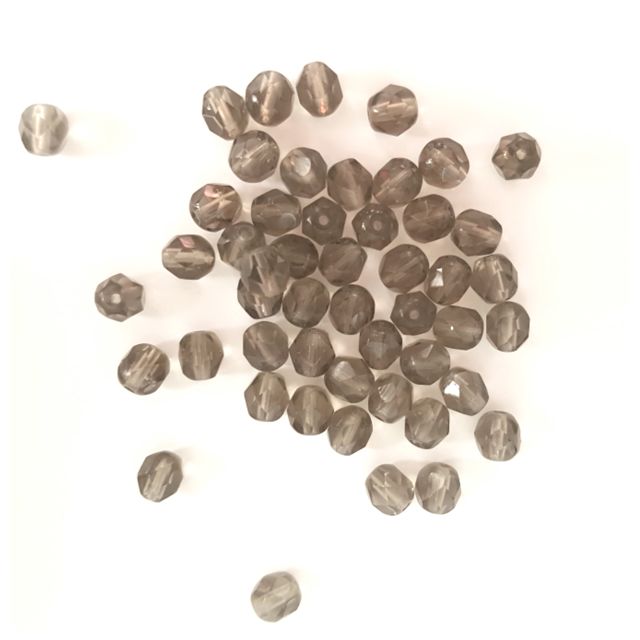 6mm Warm Grey Transparent Czech Fire Polished Bead
