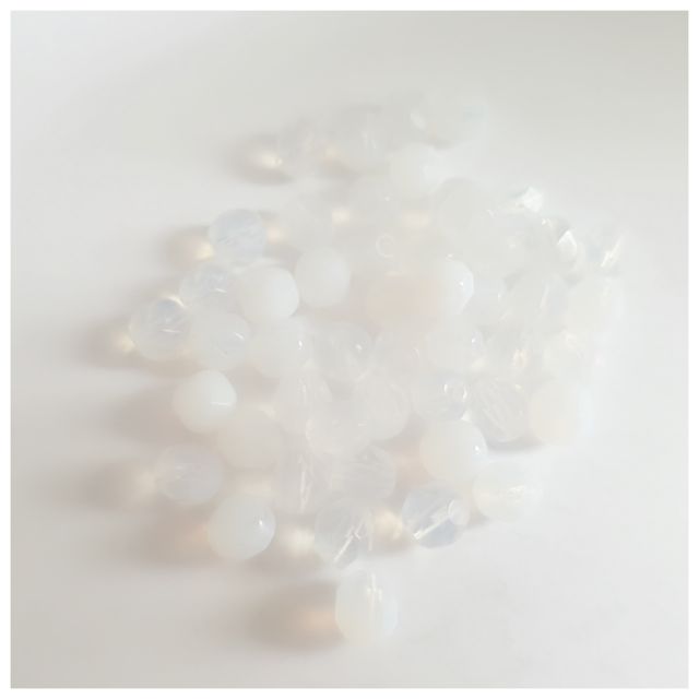 These 6mm white opalino round Czech Fire-Polished beads are a traditional style faceted bead used in beading, crafting and jewellery-making. An affordable and quality substitute to lead crystals they are a beader's staple.