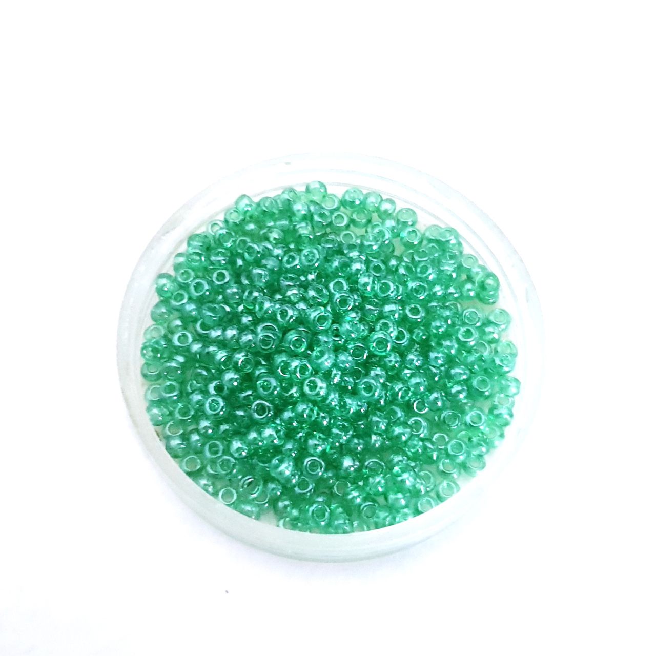 These size 8/0 Czech glass Transparent Lustred green seed beads are round doughnut shaped. They are used predominately for bead weaving, loom work, surface decorative embellishment, such as embroidery and hand bead weaving e.g peyote stitch and delicate fashion jewellery, such as beaded friendship bracelets.