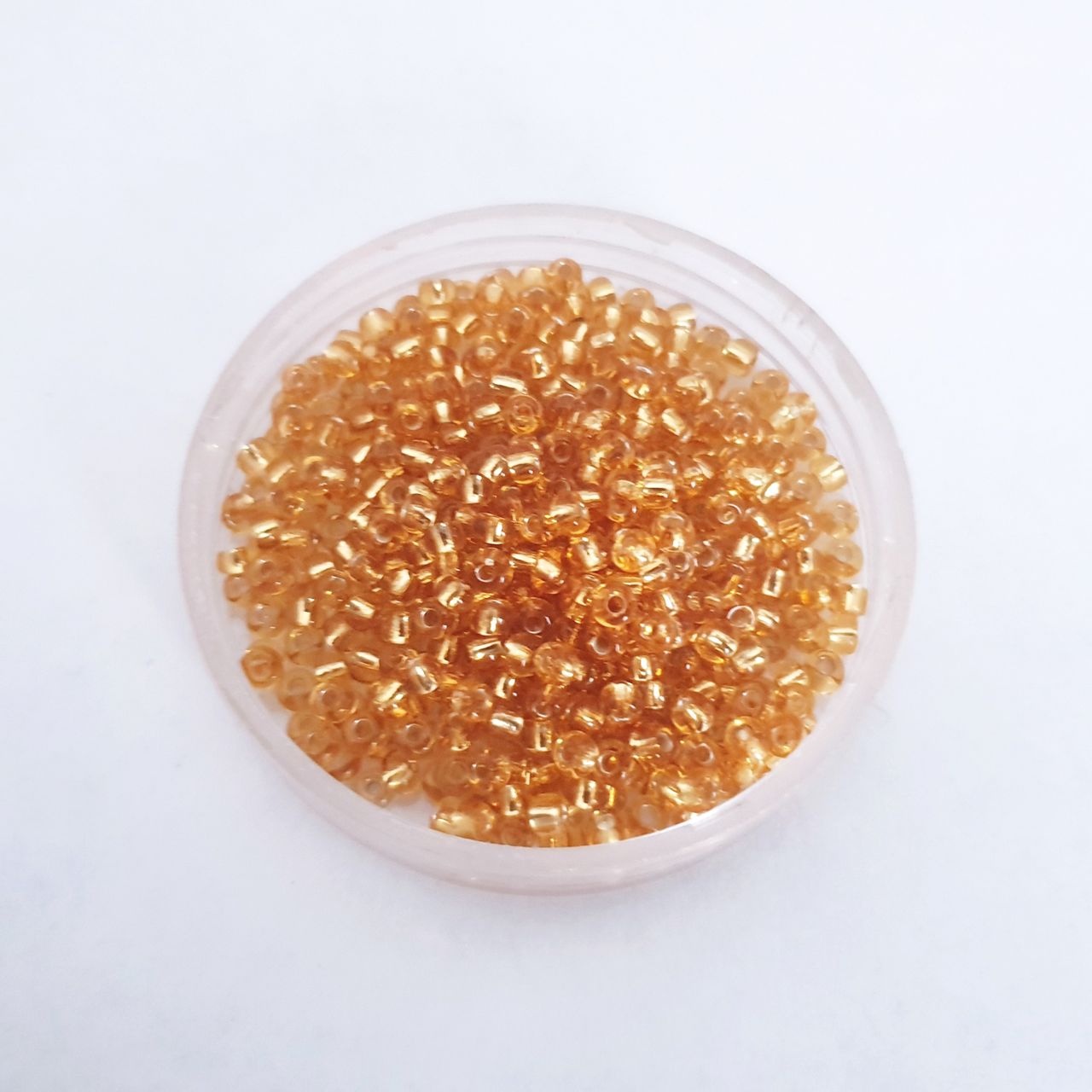 These size 8/0 Czech glass silverlined gold seed beads have a mirror like reflective lining. i.e., Transparent with the hole lined with silver to give a mirror effect. They are round doughnut shaped and used predominately for bead weaving, loom work, surface decorative embellishment, such as embroidery and hand bead weaving e.g peyote stitch and delicate fashion jewellery, such as beaded friendship bracelets.