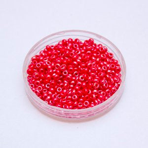 These size 8/0 Czech glass Opaque Lustred red seed beads are round doughnut shaped. They are used predominately for bead weaving, loom work, surface decorative embellishment, such as embroidery and hand bead weaving e.g. peyote stitch and delicate fashion jewellery, such as beaded friendship bracelets.