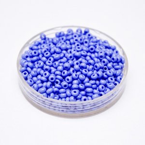 These size 8/0 Czech glass Opaque mid blue seed beads are used predominately for delicate beaded jewellery such as necklaces and friendship bracelets, bead weaving, loom work, decorative embroidery and hand bead weaving e.g., peyote stitch.