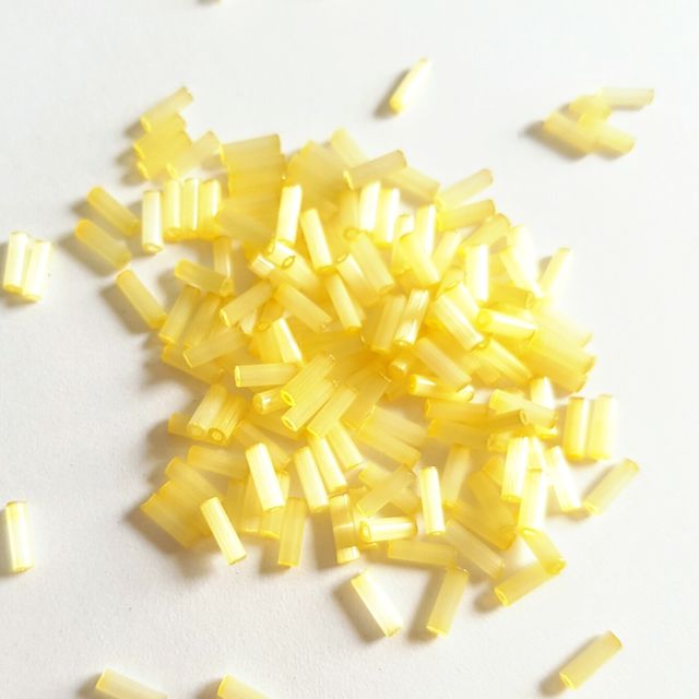 These satin solgel yellow bugle beads are made of the highest quality Czech glass by Preciosa.