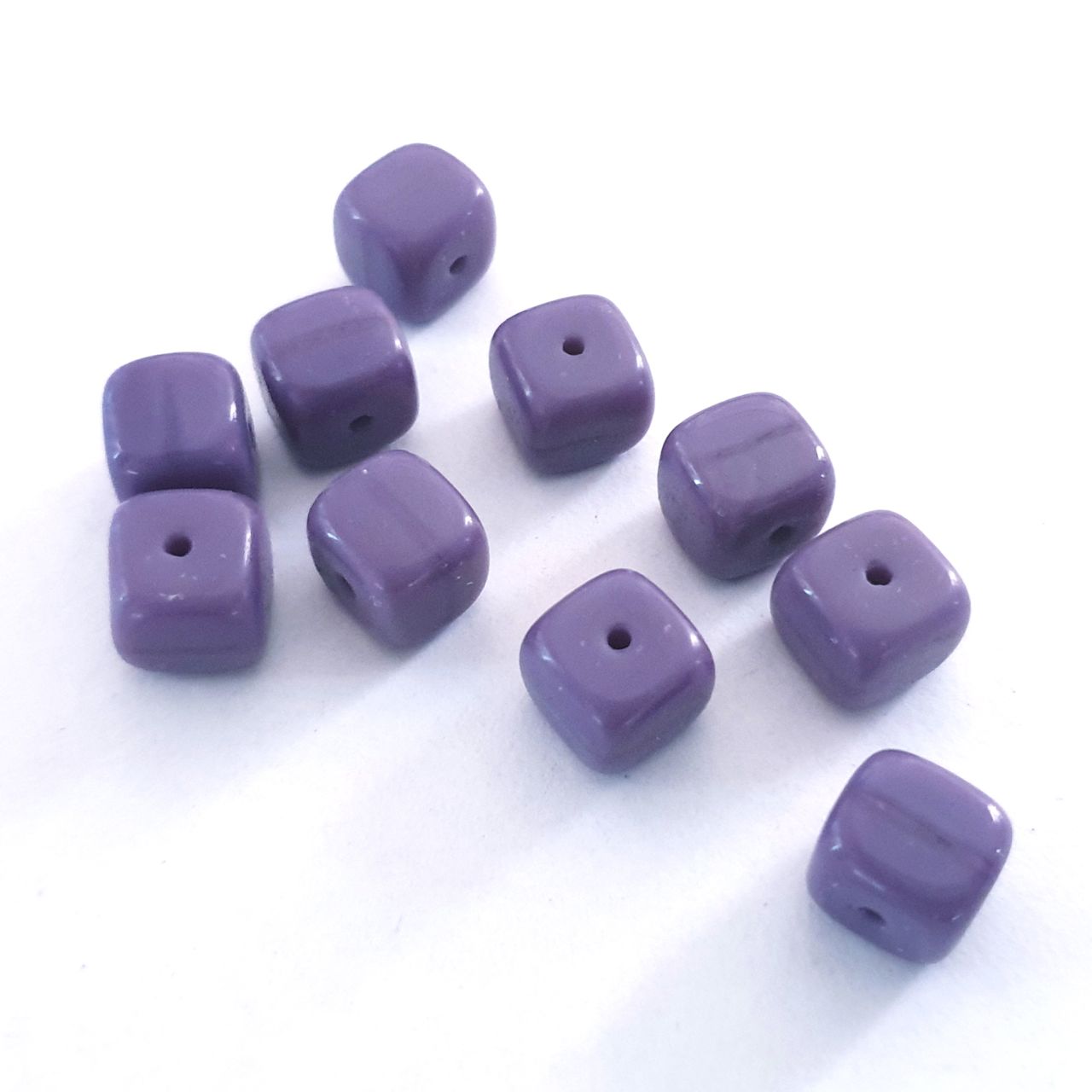 Cube 8x11mm Amethsyt Opaque Czech Glass Bead - Pack of 10