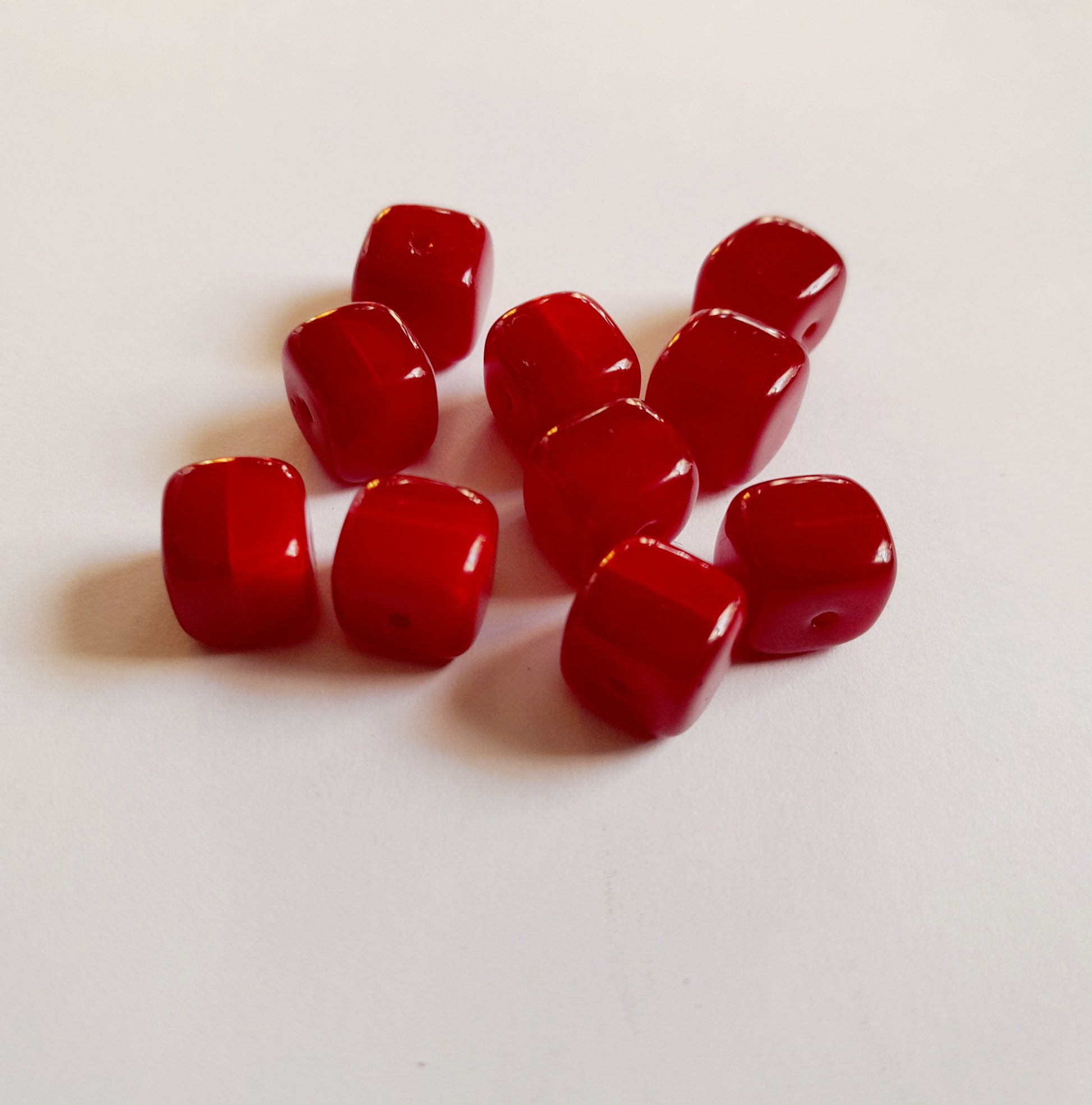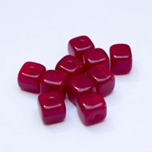 Cube 8x11mm Red Opalino Czech Glass Bead - Pack of 10