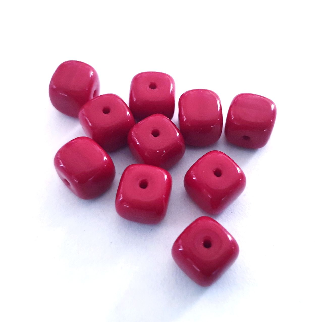 Cube 8x11mm Red Opaque Czech Glass Bead - Pack of 10