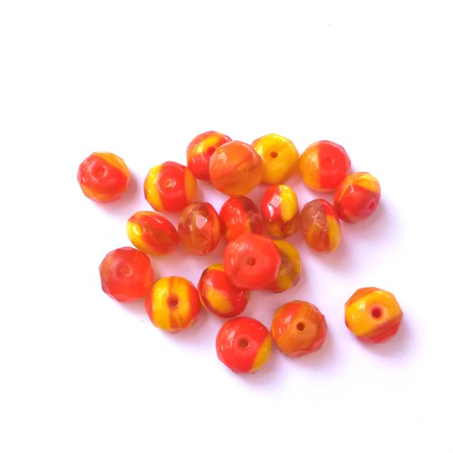 Rondelle Melon 6x9mm Opaque Two Colour Orange Yellow Czech Fire Polished