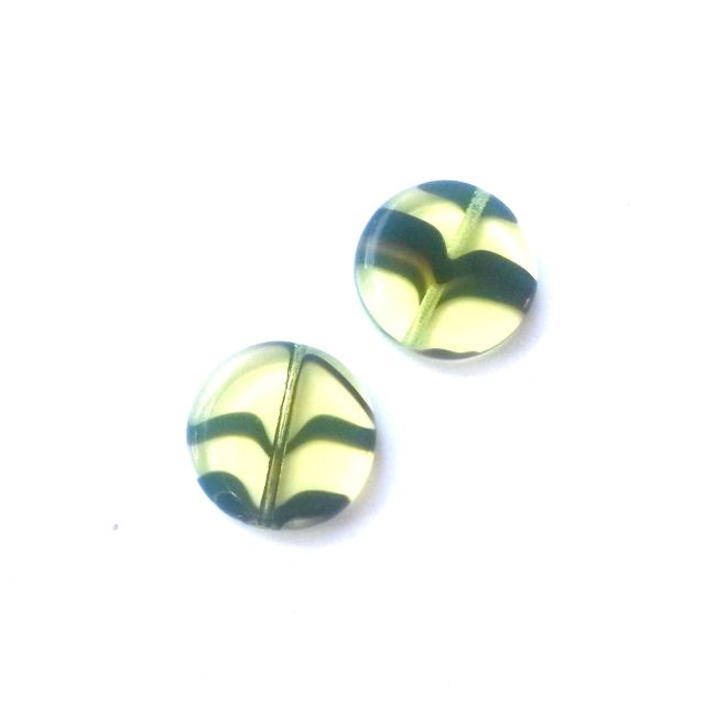Coin 17mm Chartreuse Green Animal Print Czech Glass Bead