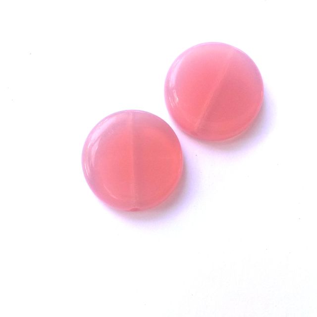 Coin 17mm Pink Opalino Czech Glass Bead