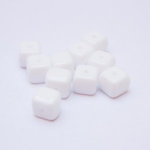 Cube 8x11mm White Opaque Czech Glass Bead - Pack of 10