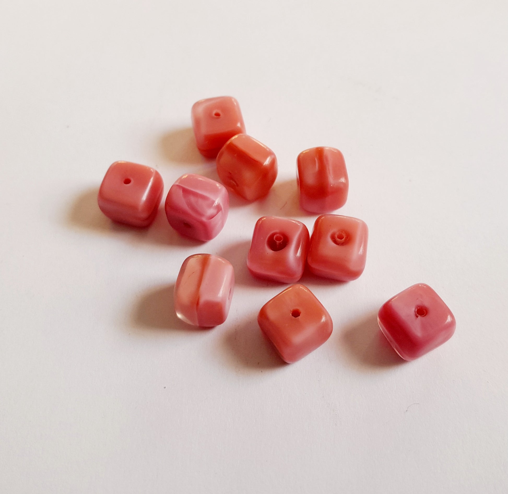 Cube 8x11mm Pink Satin Czech Glass Bead - Pack of 10