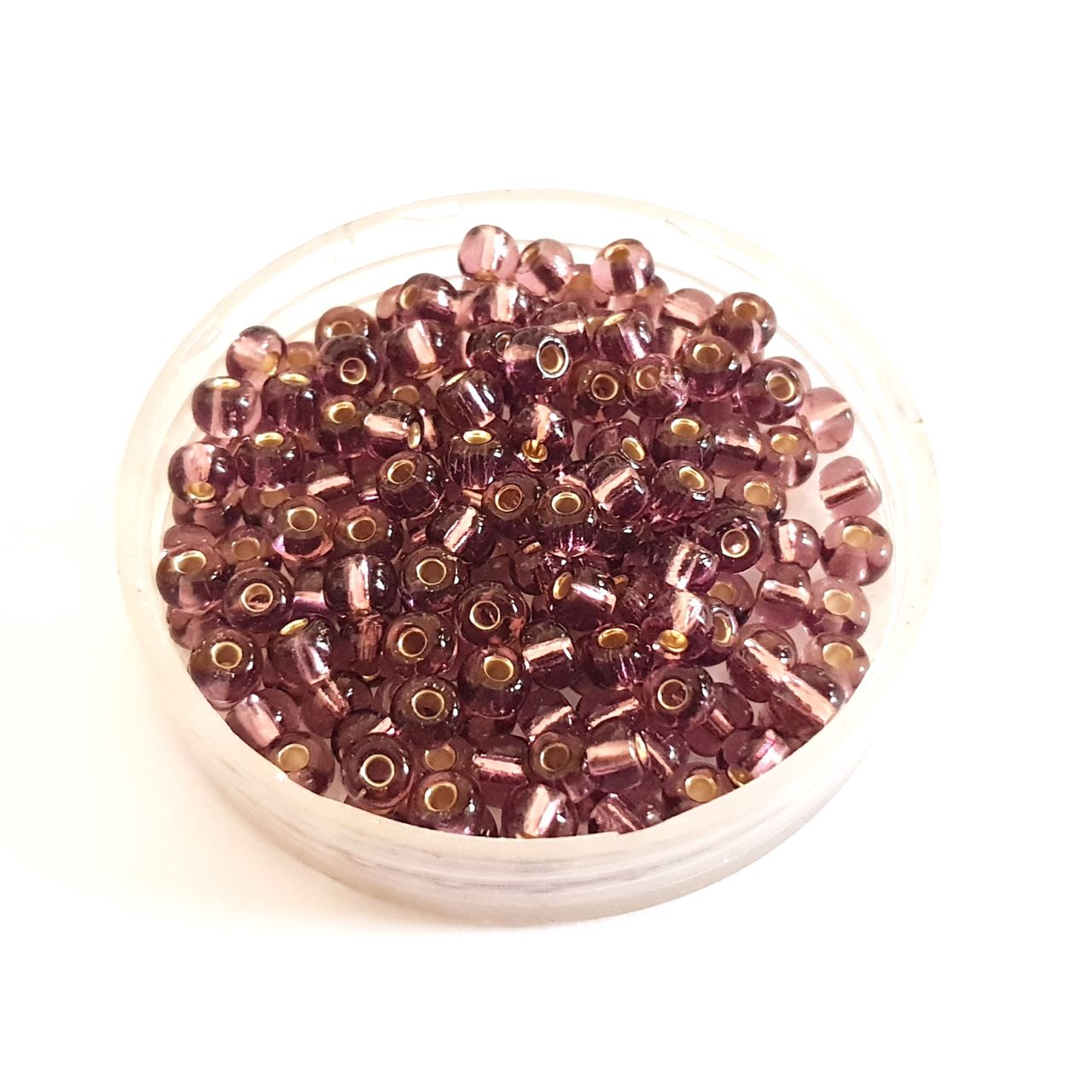 These size 5/0 4.5mm Czech glass Silverlined amethyst seed beads are the largest size we stock. Used predominately for decorative surface treatments on clothing and textiles in addition to fashion jewellery, such as friendship bracelets, they are also a good size for children, (over 5 years). They can also be used in hand bead weaving e.g peyote stitch because of their uniform shape. At Bead Vault we offer the largest range of Czech glass seed beads in Australasia, with over 50 colours in our 5/0 seed bead range. Over of colours and finishes and sizes available give the crafts person broad scope in creativity. Sizing is based on the size rod used for the manufacture of glass beads. The smaller the number, the larger the bead.