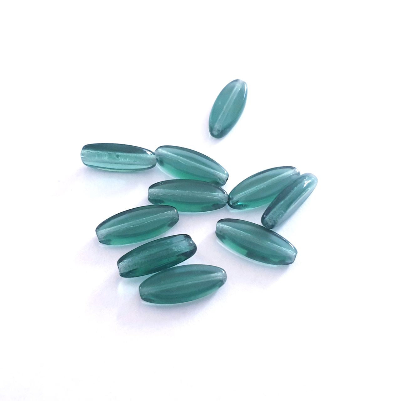 These beautiful flat oval beads are made using high-quality pressed Czech glass. They are also known as spindle or petal beads.