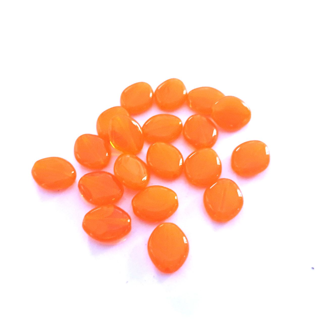 These small oval shaped Czech glass beads are produced in moulds which allows for more complex shapes and a uniform size and hole like these pumpkin opalino flat beads.